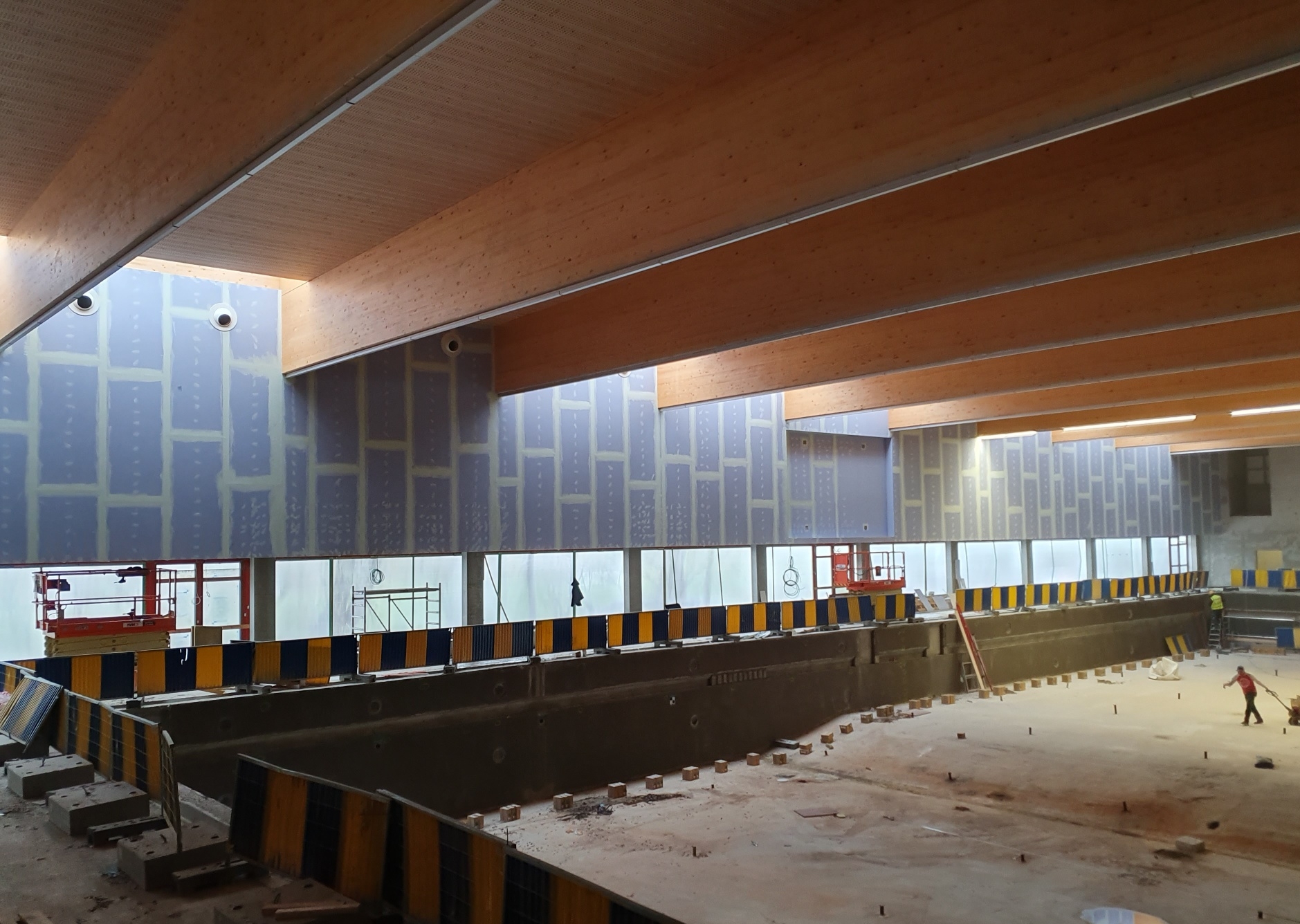 La société Mila BV, sous-traitante de l’entrepreneur général Sportsbuilders (une association momentanée entre Olco Sportsphere et Stadsbader), était responsable des travaux de plafonnage intérieur et extérieur et de l’installation de cloisons sèches et des plafonds dans la piscine et le hall d’entrée. Cet environnement spécifique exigeait bien entendu des produits capables de résister à des conditions humides ; c’est pour cette raison que Mila BV a fait appel à Gyproc®.